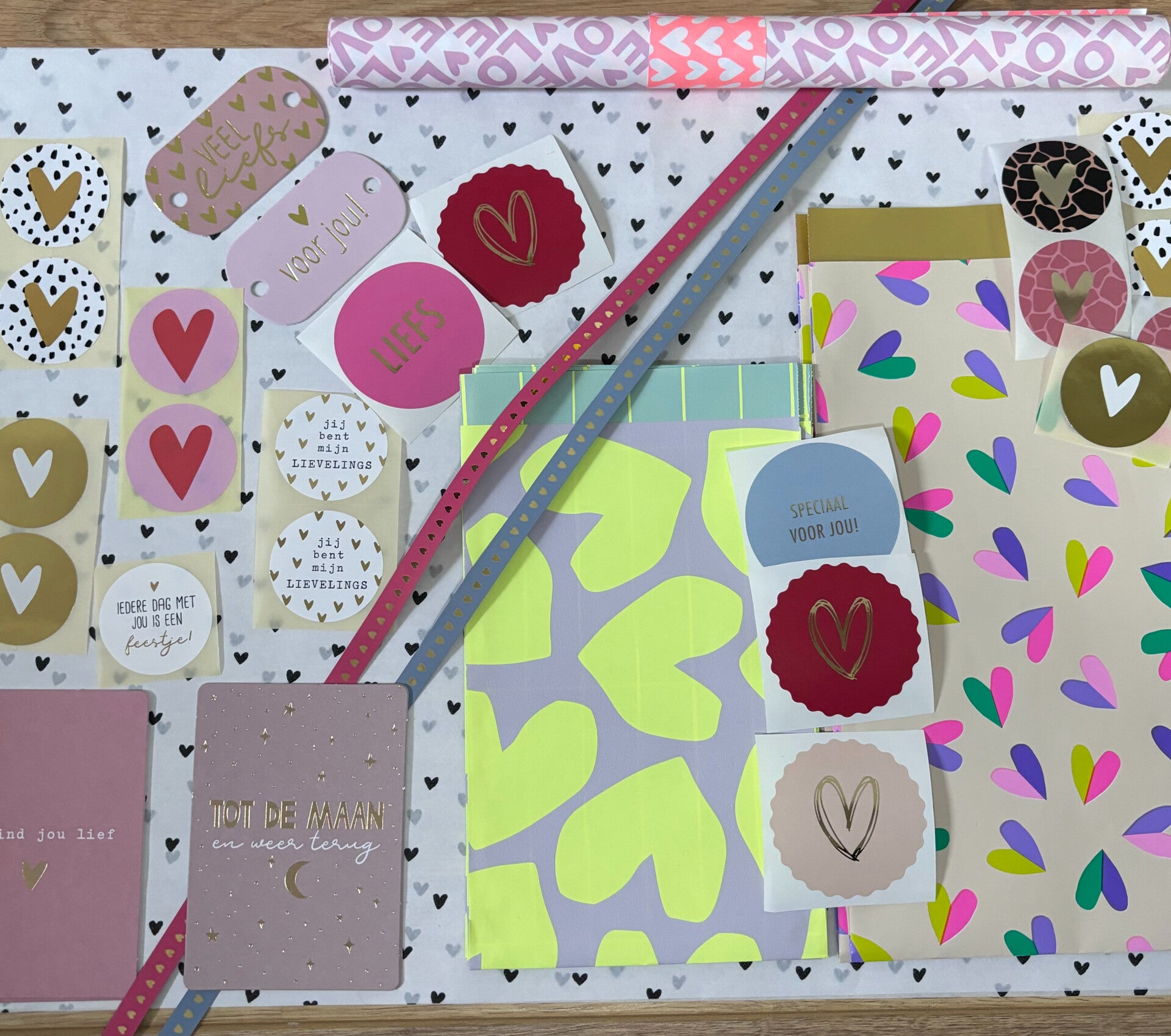 Met dit leuke inpakset heb je alles in huis om je cadeautjes tot een succes te maken! De mooie mix is goed te gebruiken bij bijvoorbeeld valentijn, maar ook leuk voor je vriendin, moeder, oma, of je juf.